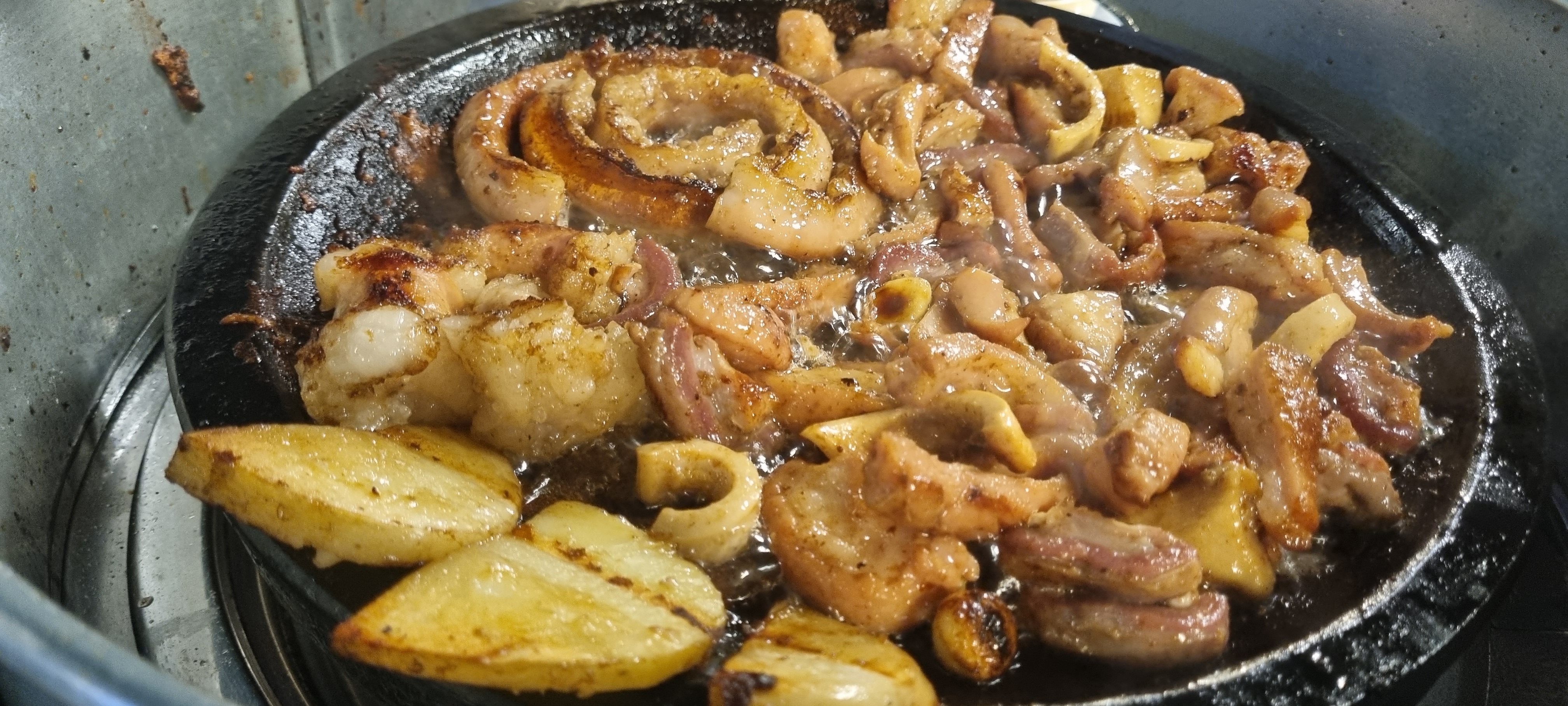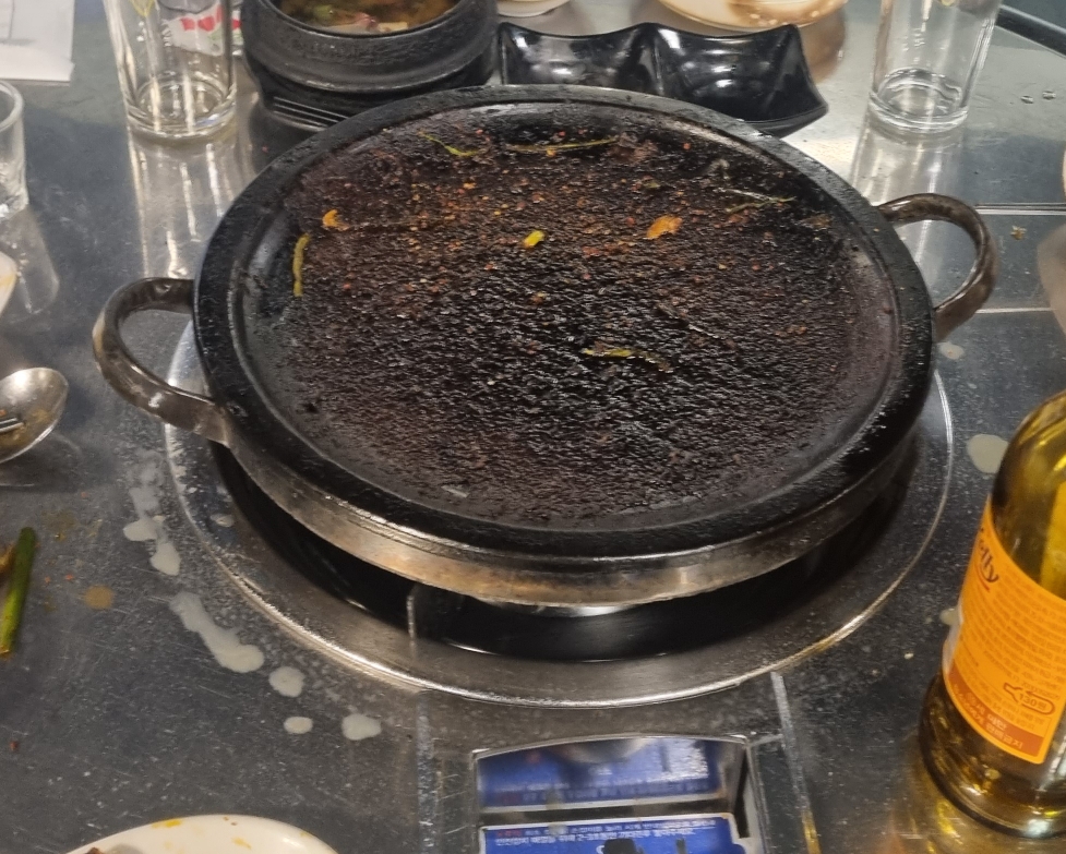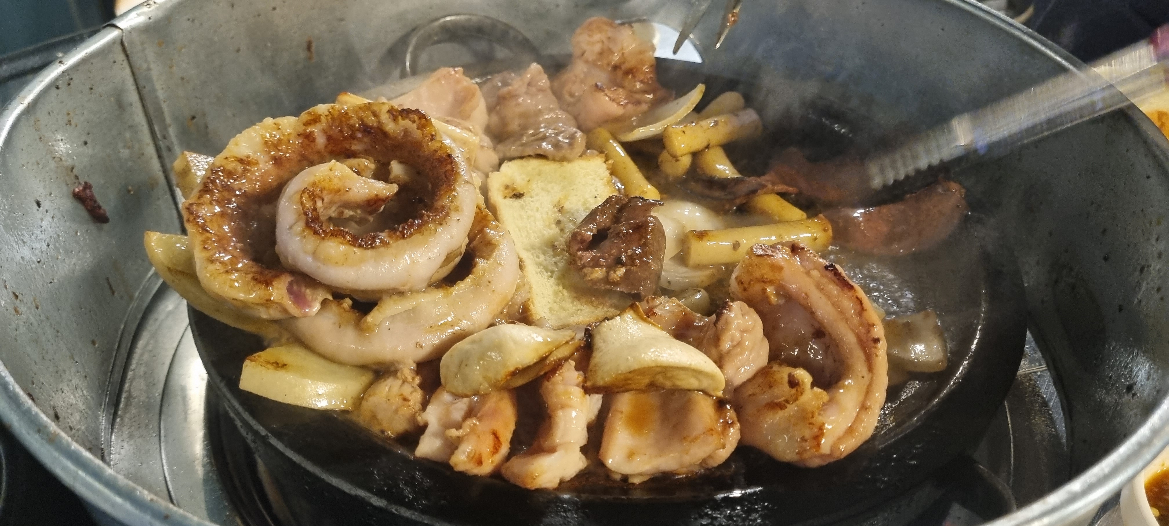 직원분께서 직접 모듬 고창을 익혀주세요. 익히는 과정이 쉬워 보이진 않았어요. 요거 익히는 것도 많은 인내와 끈기가 필요하지 싶었어요.
