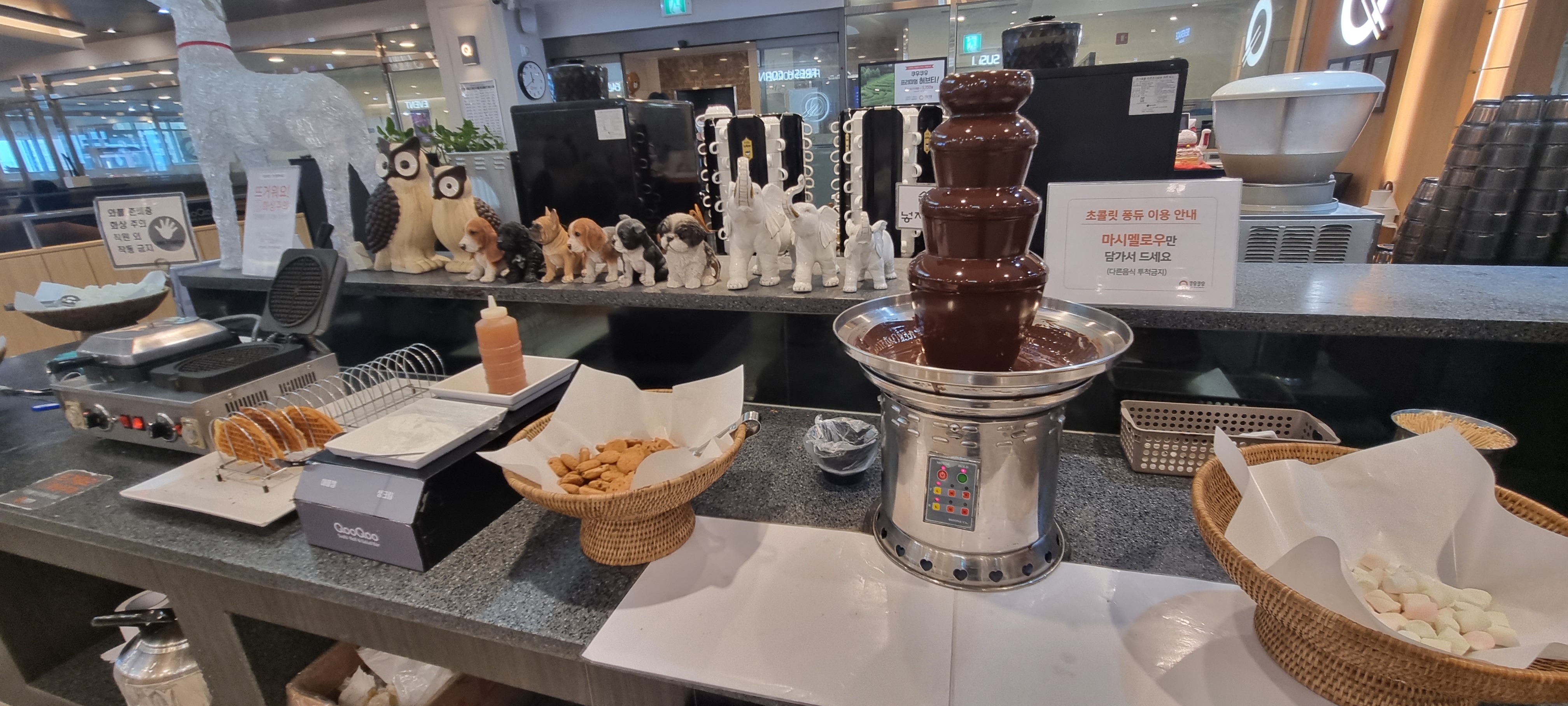 마시멜로와 초코 퐁듀도 있었는데 재밌고 맛있었어요.