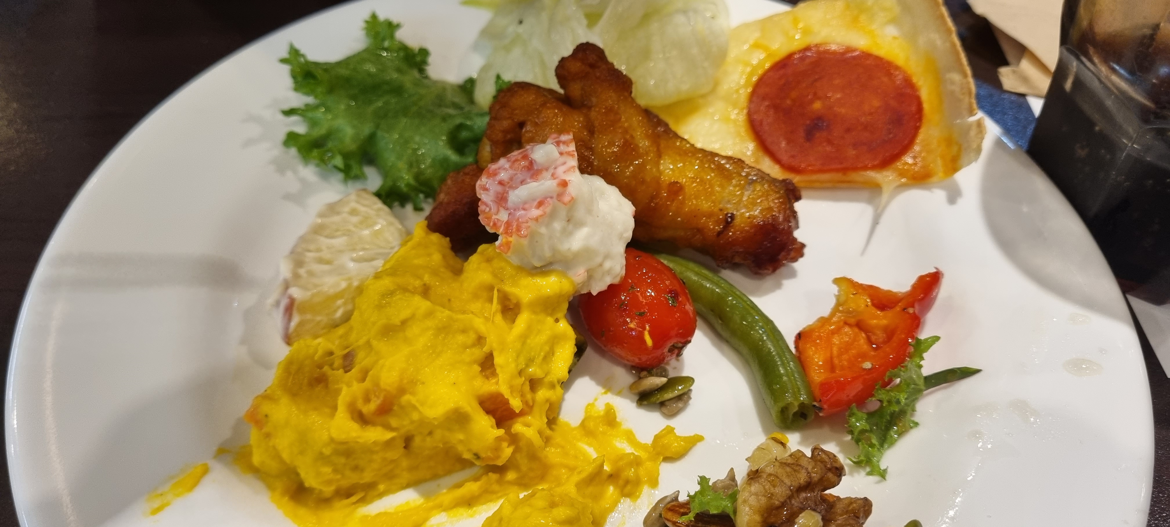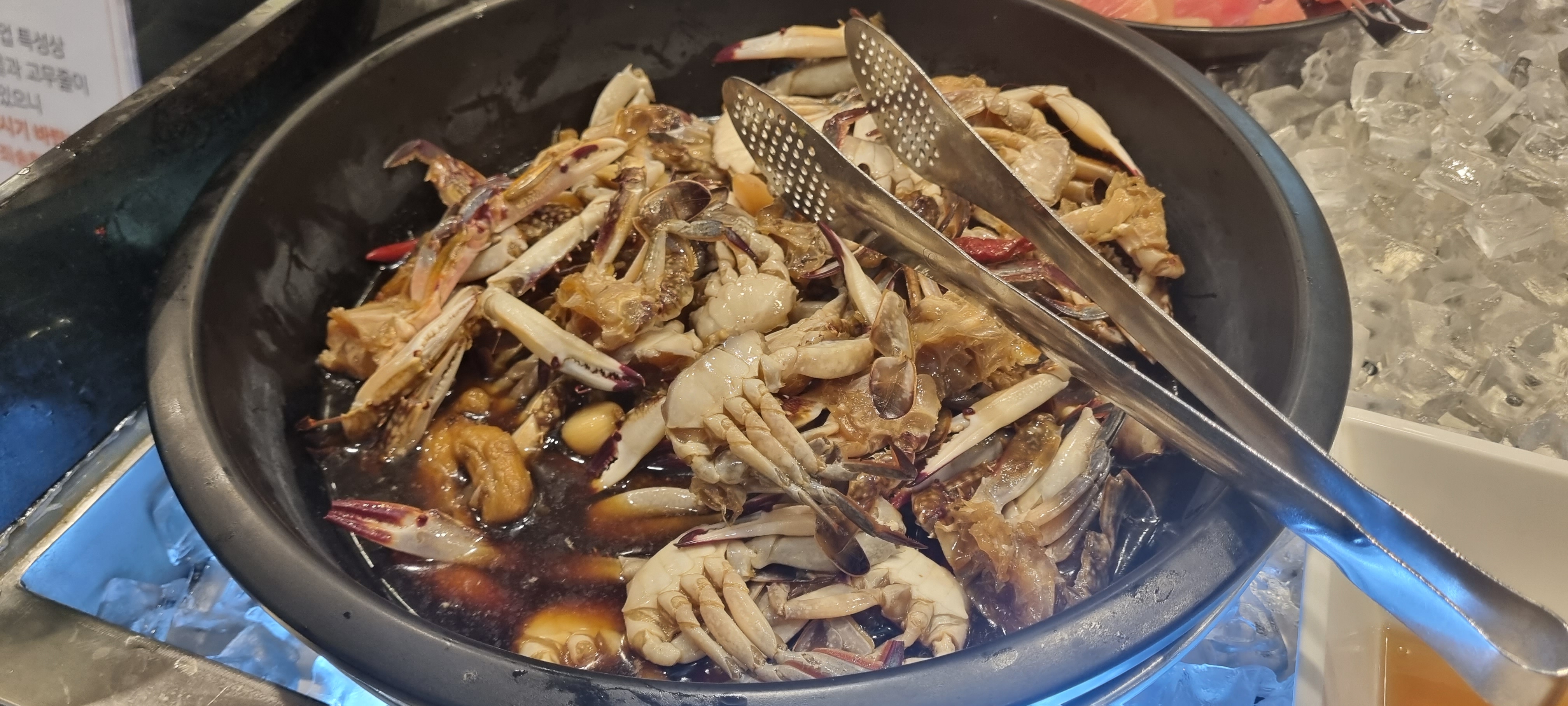 샐러드도 다양했어요. 저는 쿠우쿠우를 많이 다녀보기도 했고 많이 못 먹는 스타일이라 종류별로 다 못먹고 몇 가지만 골라서 먹어요. 주로 타코와사비를 많이 먹어요. 저는 낙지를 좋아하는 것 같아요. 칠리새우도 맛있었어요.