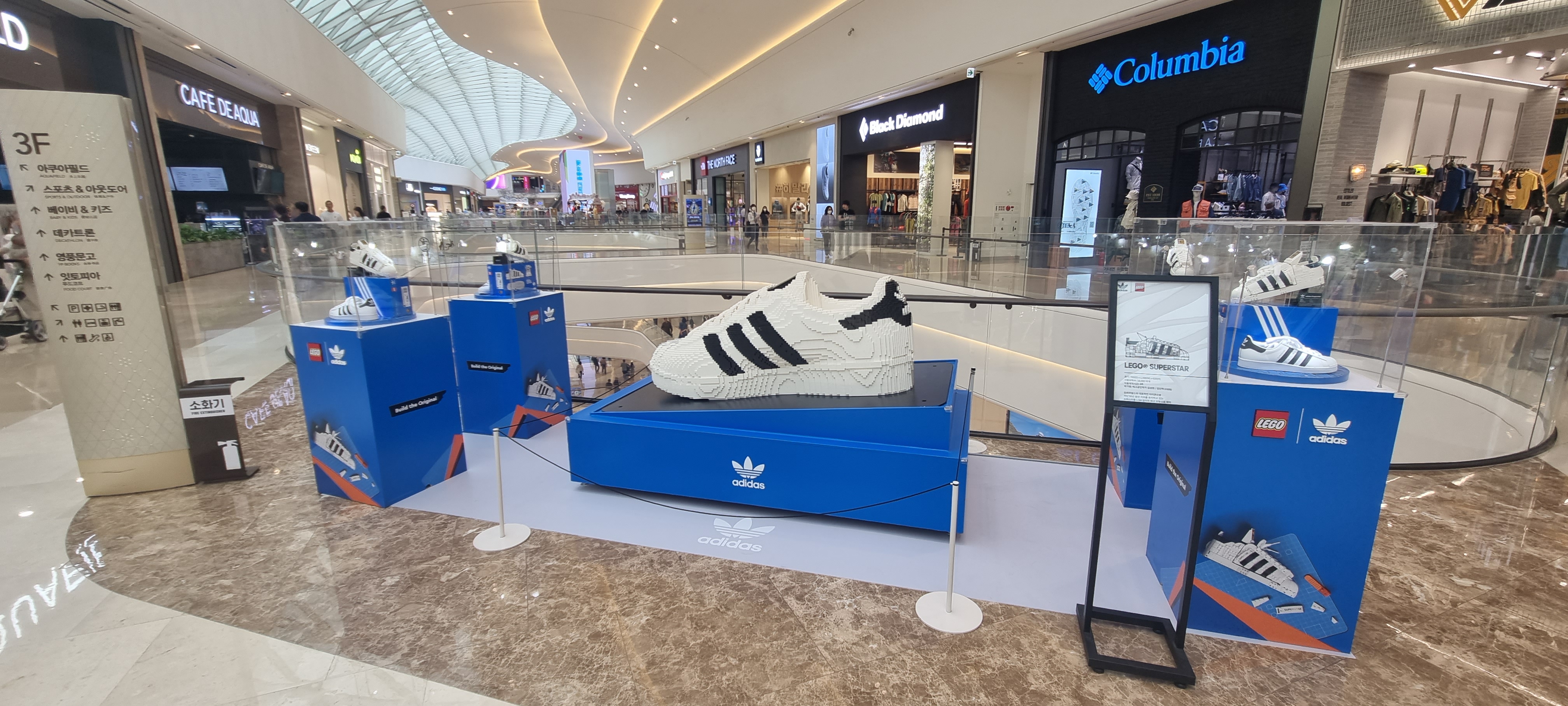 신세계 백화점 가는 길에 다리도 아프고 쉴겸해서 아디다스 레고 모형 구경 좀 했어요.
