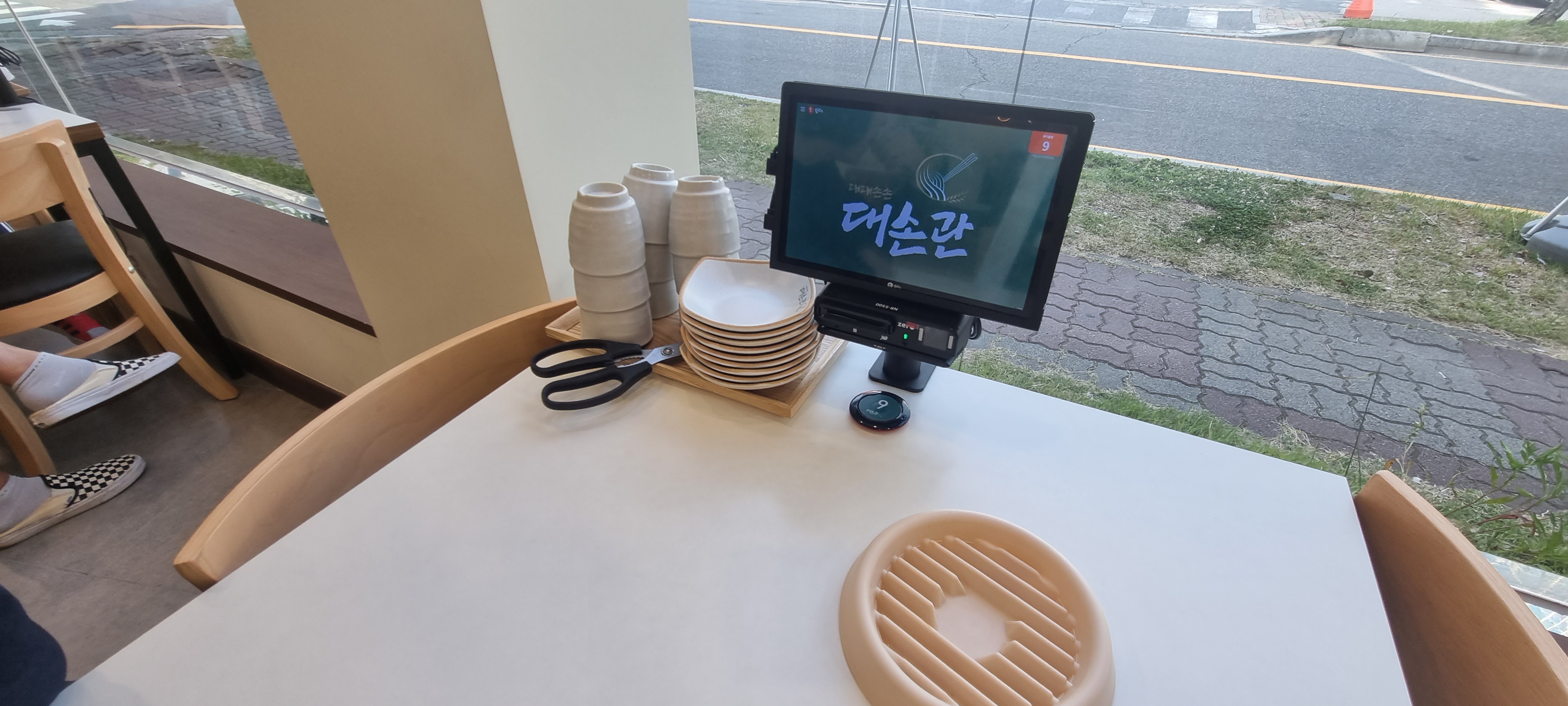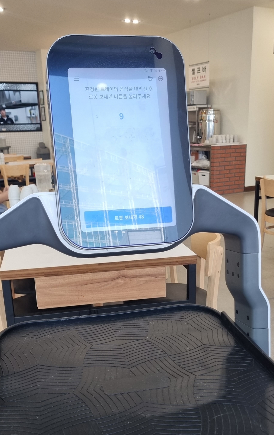 자리에 앉았는데 직원분은 거의 안 보이고 무인계산기와 서빙 로봇만 돌아다니고 있었어요.