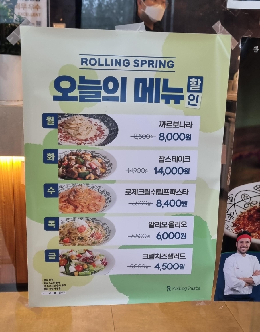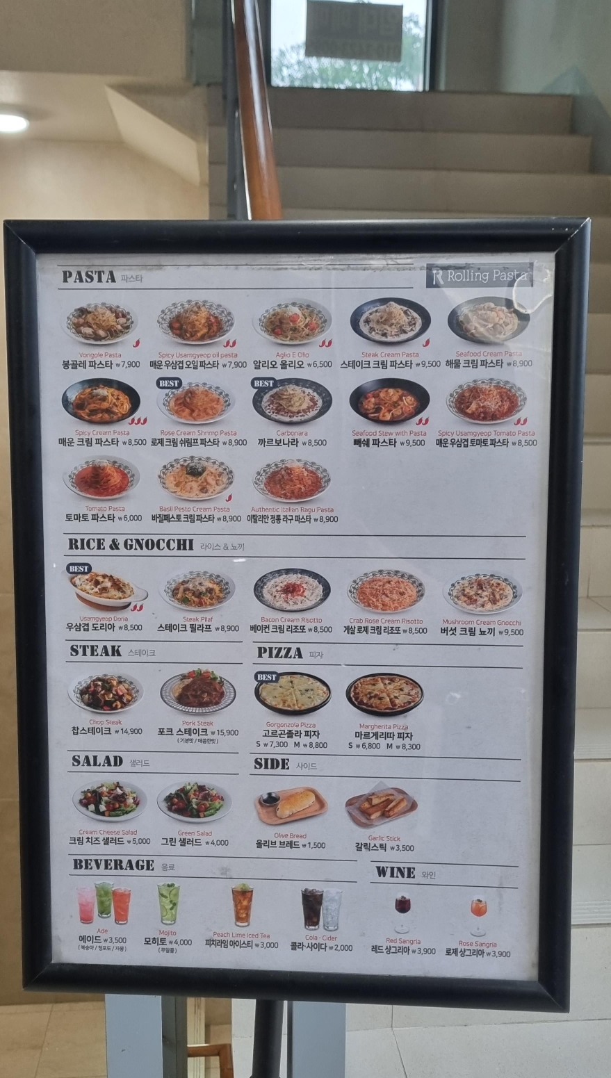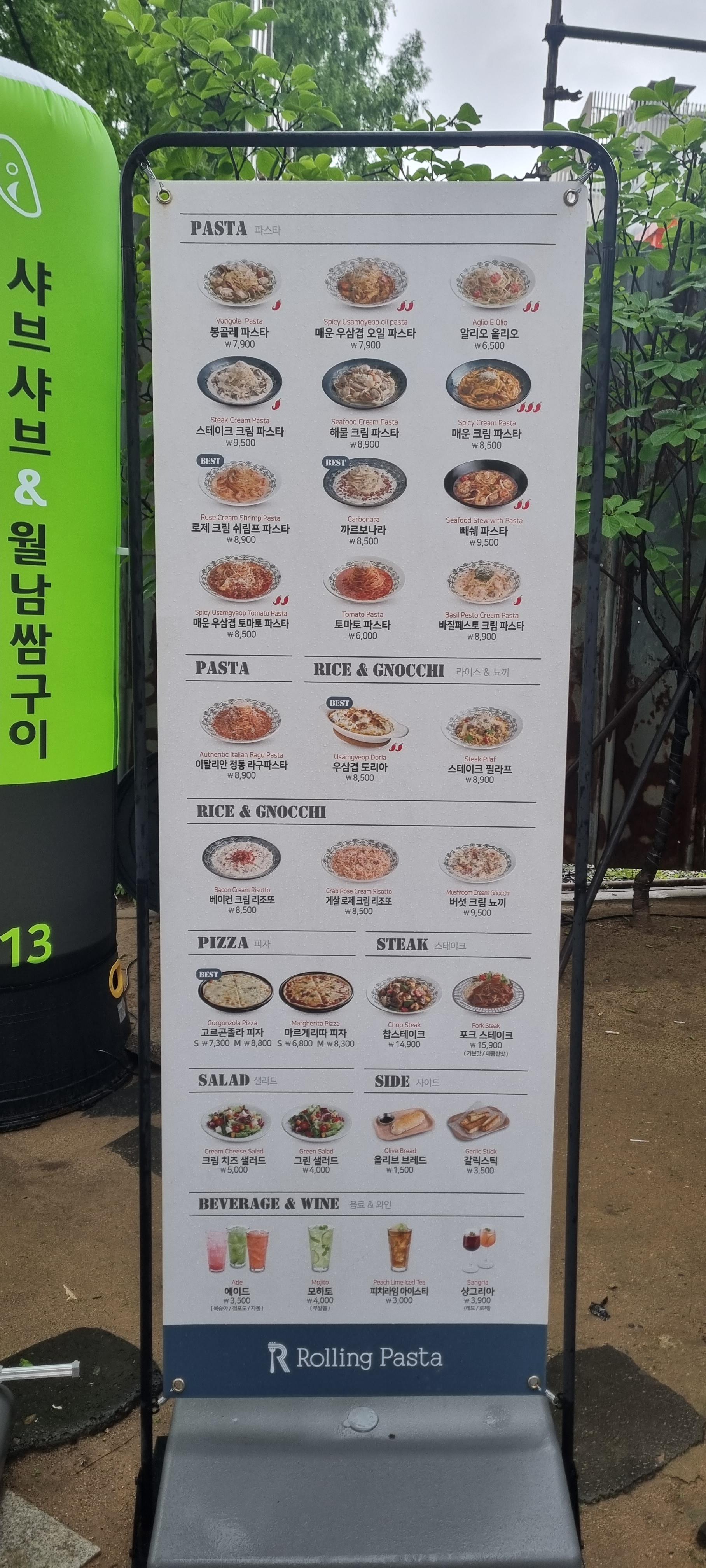 입간판에 메뉴들과 가격이 잘 정리되어 있었어요.