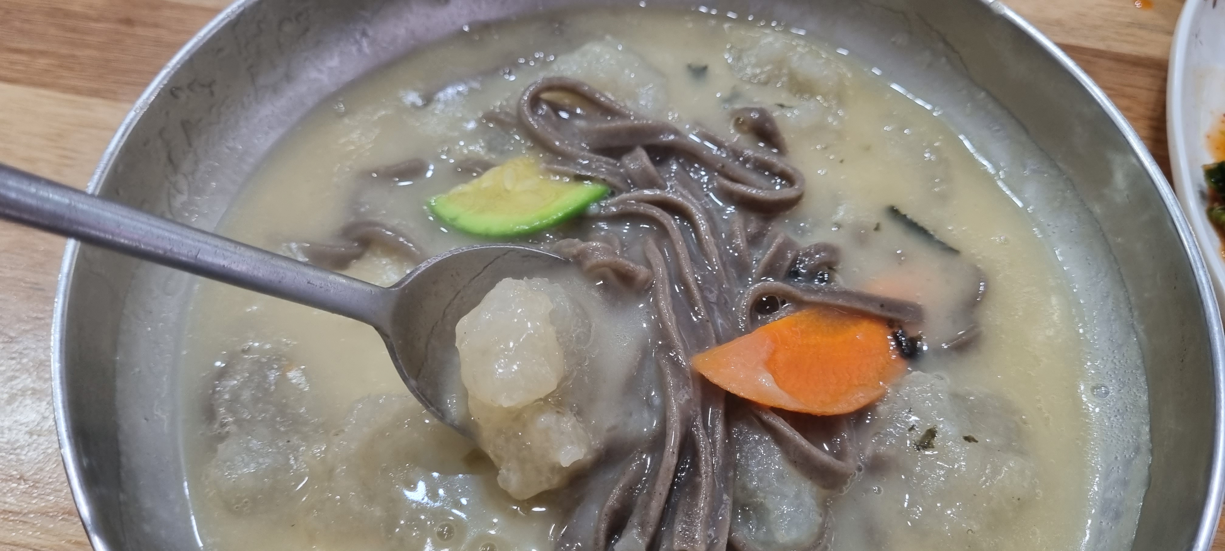 옹심이와 메밀 칼국수가 반반 섞인 것이라고 하셔서