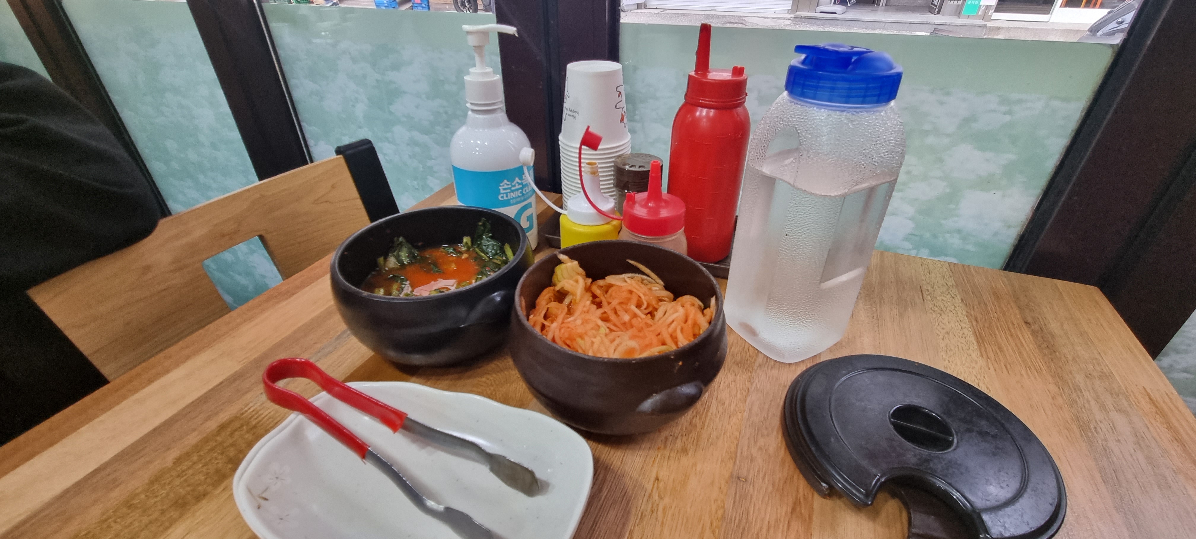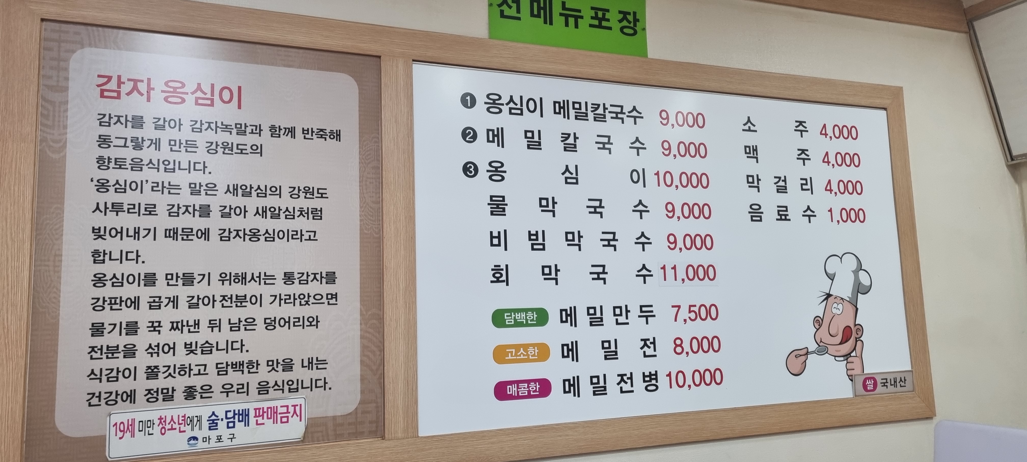 처음 왔으니 옹심이 메밀칼국수를 먹기로 했어요.