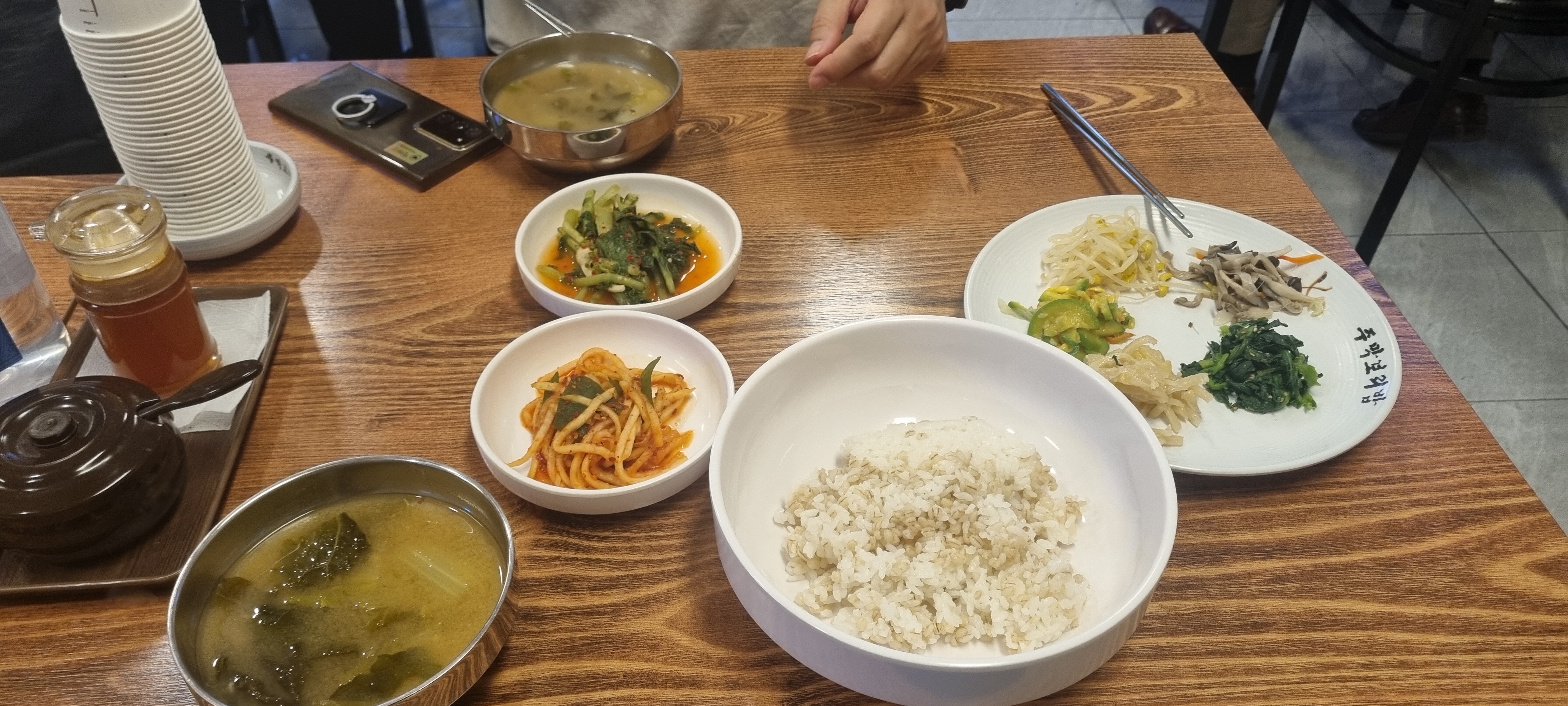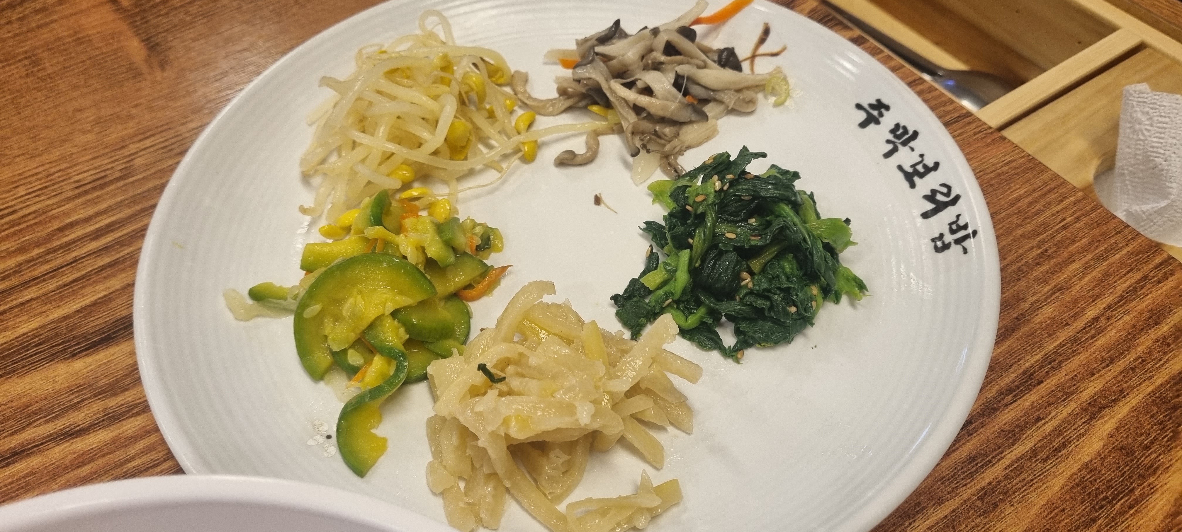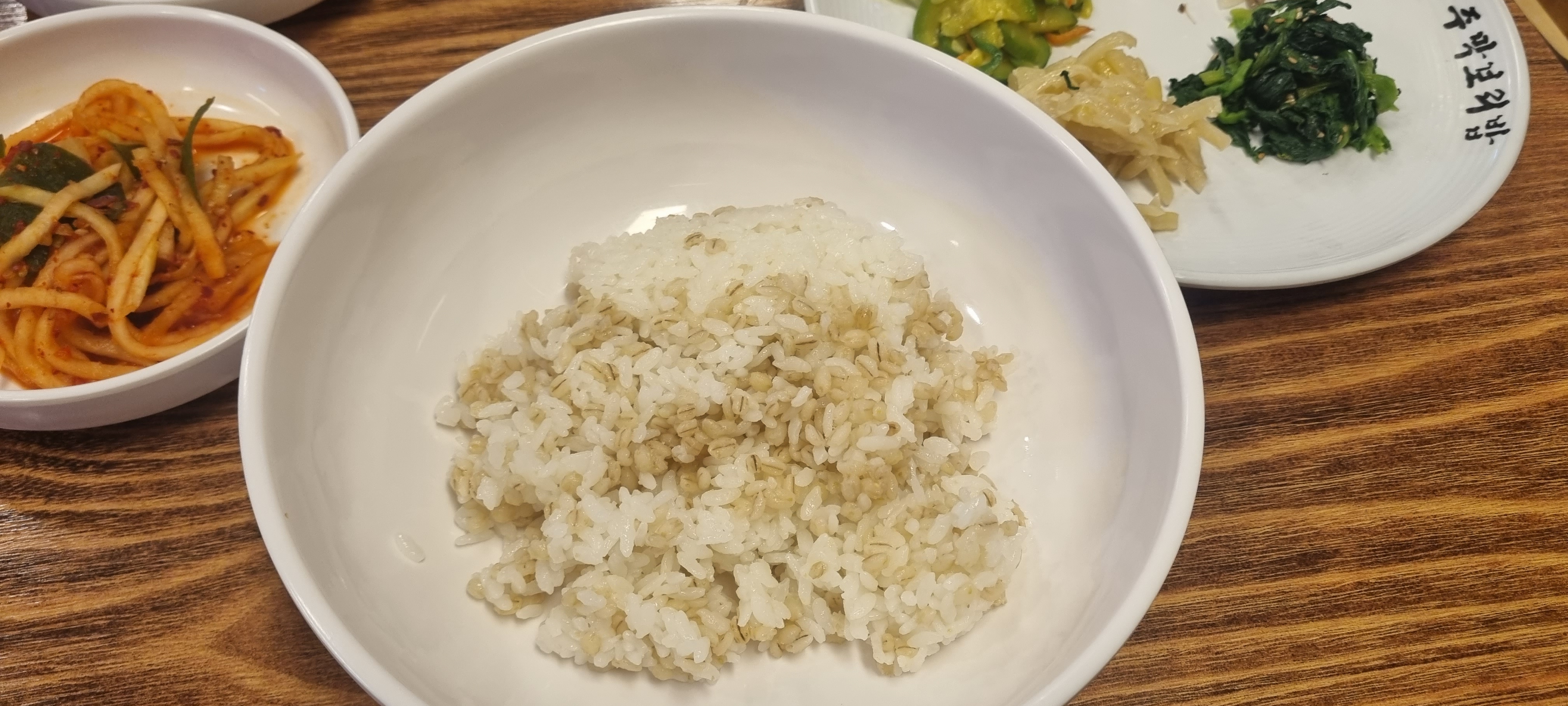 그런데 보리밥은 좀 아쉬웠어요. 원래 서비스로 주는 콩나물과 나물 외에 도라지와 호박무침 시금치 때문에 9천 원이나 받는 건 좀 돈이 아까웠어요. 양도 별로 없었고요. 계란 하나 올라간 것도 아니고...