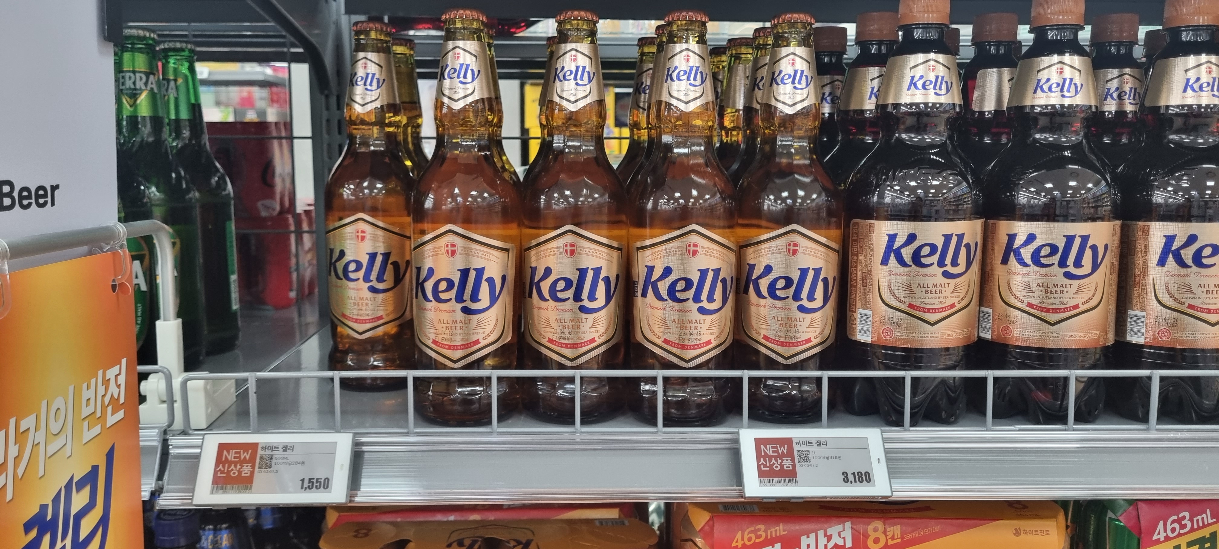 아마도 보리를 연상시키는 컬러를 포장 패키지에 적용한 듯해요. 켈리 맥주병 1개 가격은 500ml 기준 1550원이었어요. 켈리 맥주가 아직 제 입 맛에 검증이 안 됐으니 1병만 사기로 했어요.