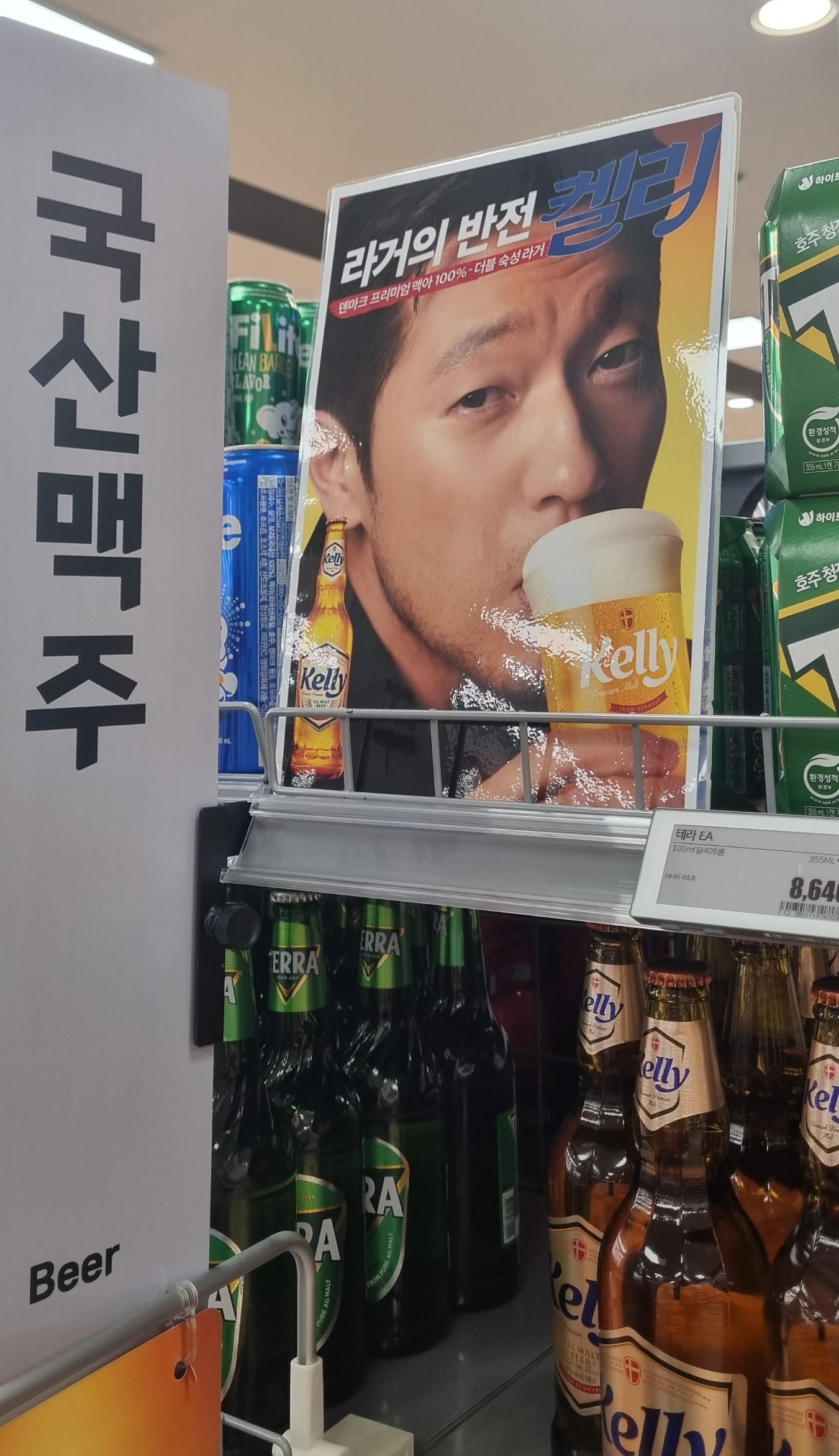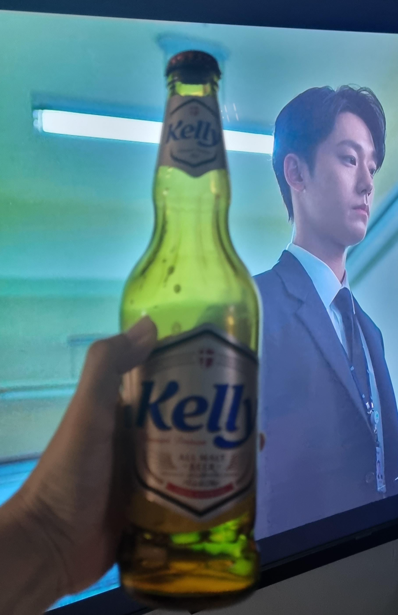 켈리 맥주의 모델은 배우 손석구 씨더라고요. 캔 맥주로 구매하고 싶었으나 마트라 낱개 구매가 어려워서 우선 켈리 병맥주 한 개만 사 보기로 했어요