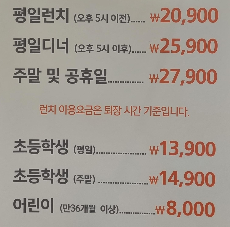 가격은 성인기준 다음과 같아요.