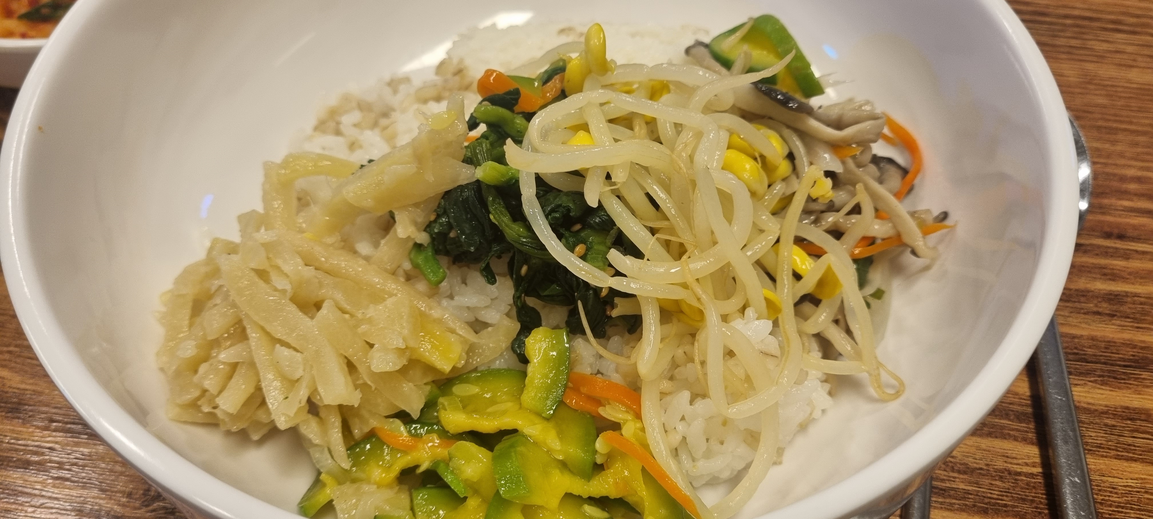 그런데 보리밥은 좀 아쉬웠어요. 원래 서비스로 주는 콩나물과 나물 외에 도라지와 호박무침 시금치 때문에 9천 원이나 받는 건 좀 돈이 아까웠어요. 양도 별로 없었고요. 계란 하나 올라간 것도 아니고...