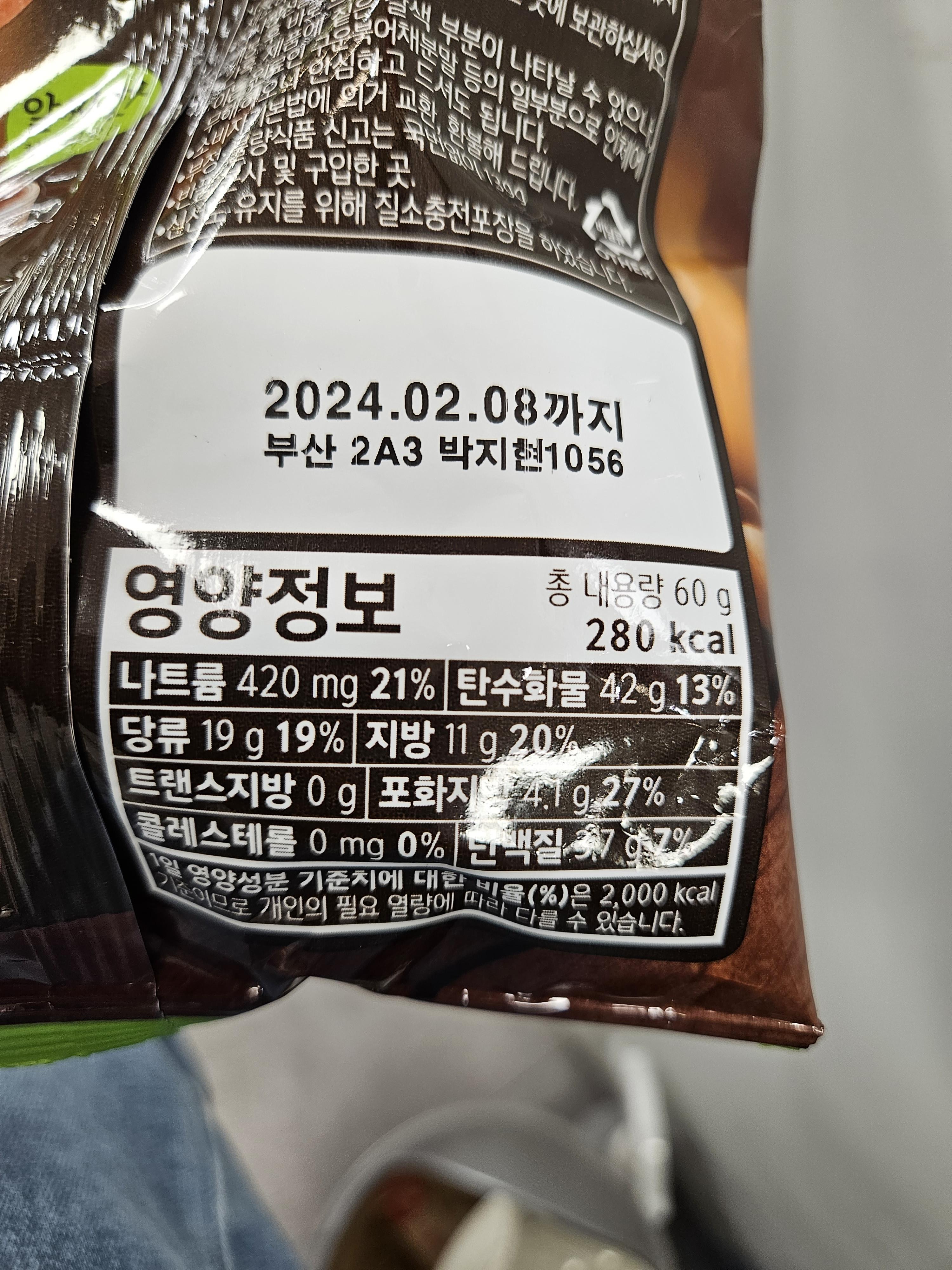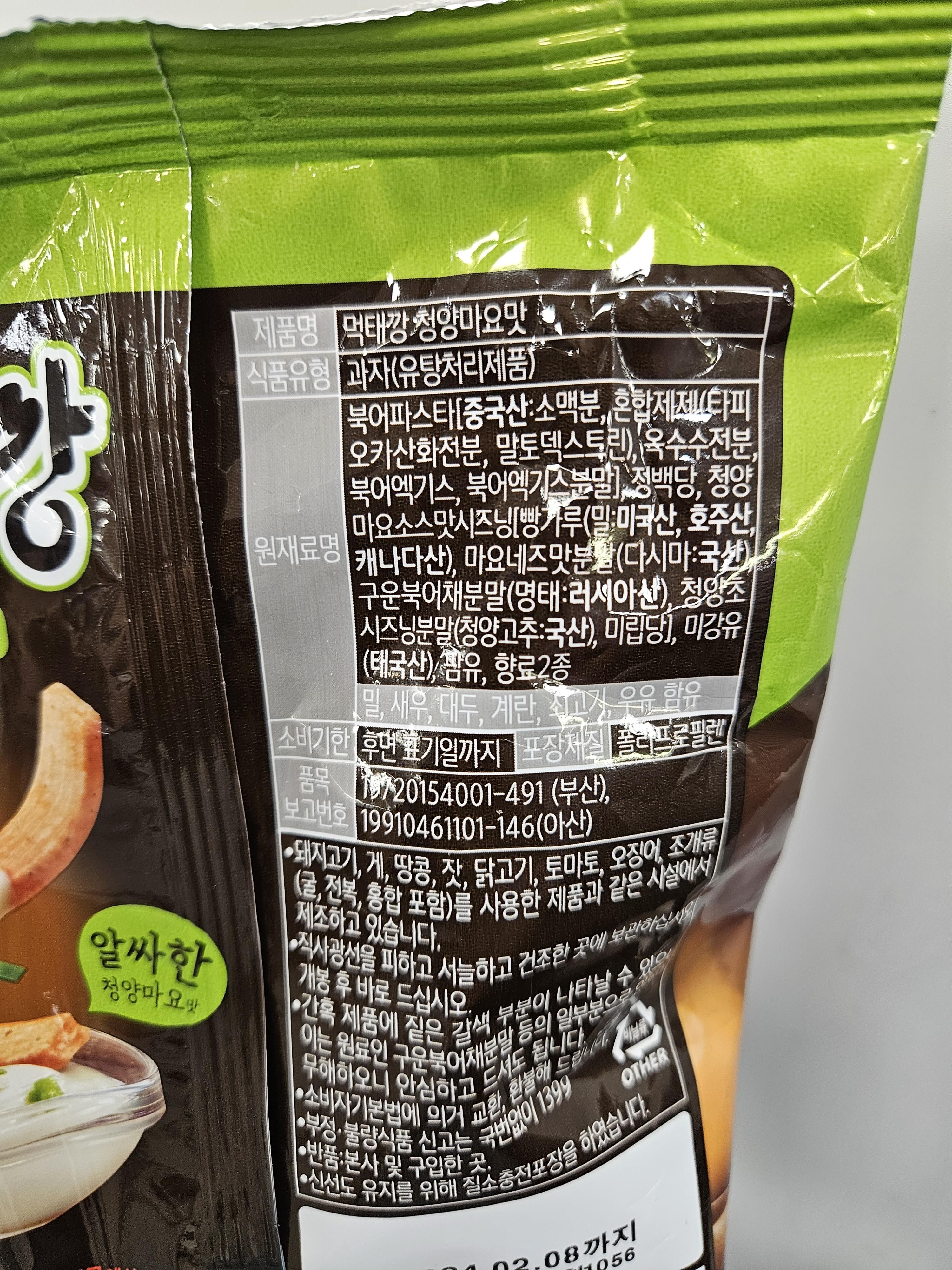 영양 정보를 보니 북어, 청양고추, 마요네즈 분말이 들어가더라고요.