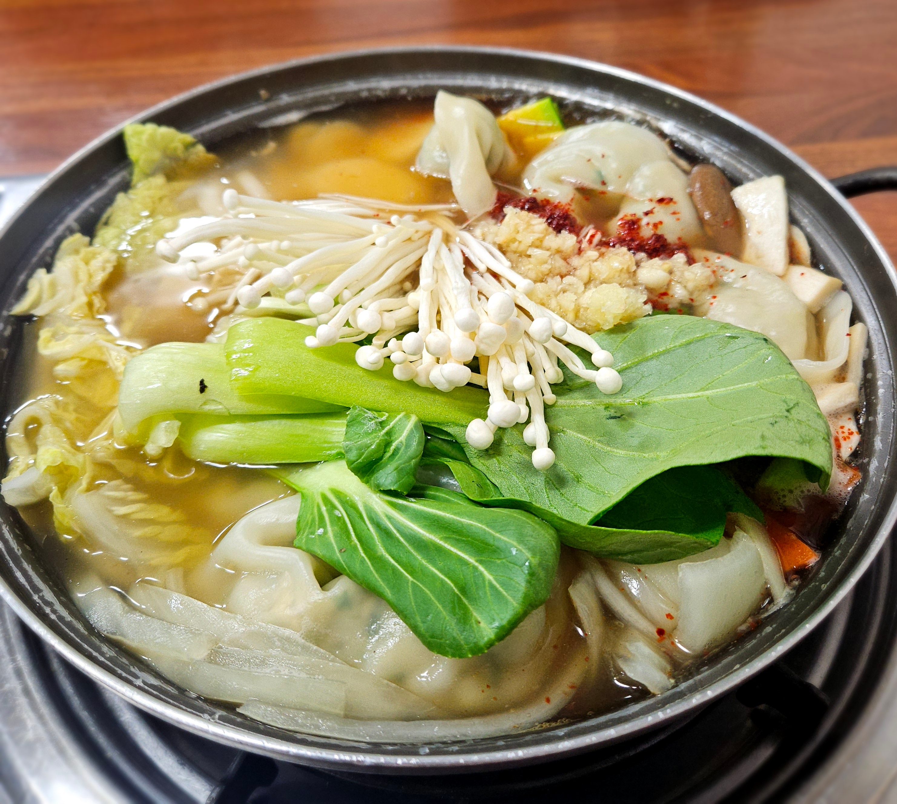 3. 수제 만두전골 – 푸짐하고 깊은 맛!