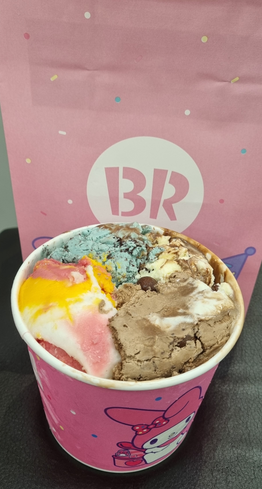 저는 슈팅스타를 좋아하는데 4가지 맛 중에 없어서 조금 아쉬웠어요. 입안에서 톡톡 터지는 알갱이가 너무 상큼하고 맛있거든요. 어쨌거나 오늘 베스킨라빈스 맛있게 잘 먹었어요. ㅎㅎ